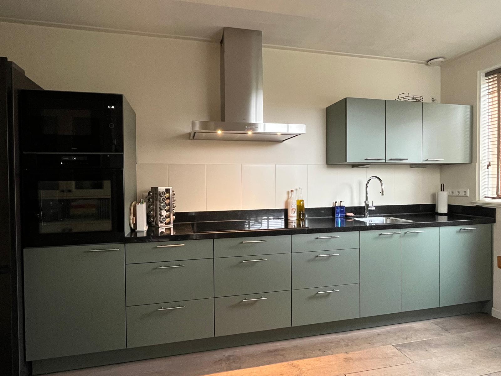 Bij deze renovatie bleven het aanrechtblad en de kasten behouden. Nog in topconditie en passend bij het nieuwe ontwerp. De verouderde fronten en apparatuur zijn vervangen door moderne, duurzame alternatieven. Zo krijgt uw keuken een frisse uitstraling, zonder onnodig materiaalverlies.